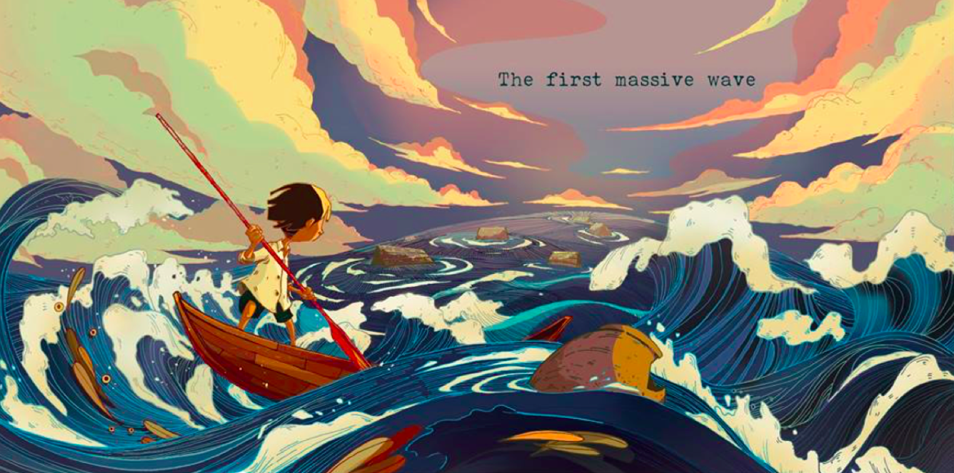 - the ocean is either calm are in rage showing with the scenery a prefiguration of the story It would be intersting to build up my scenery to prefigurate the story ?