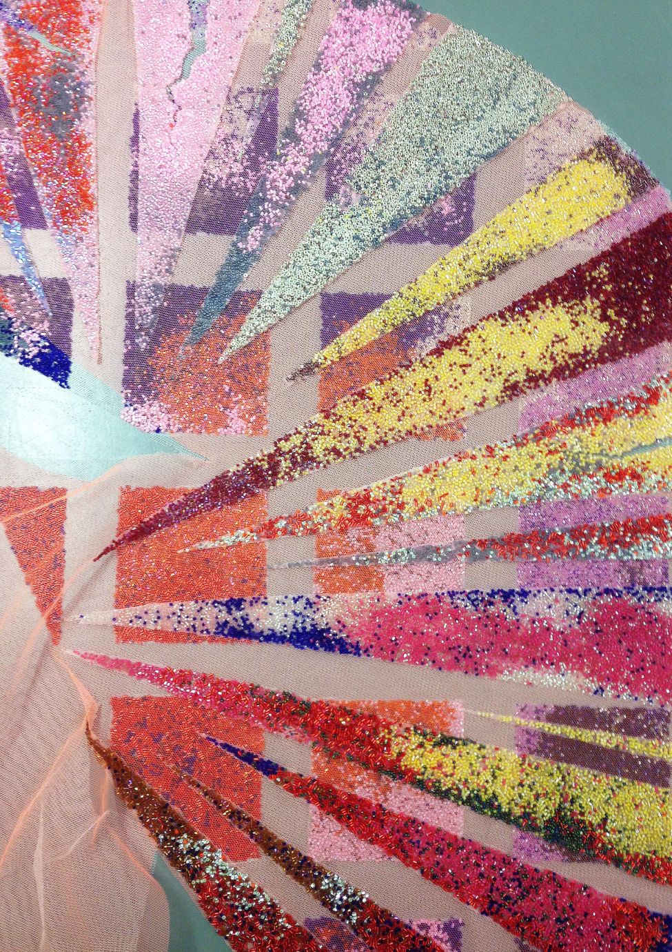 - Interesting fabric to represent sparkles feels like its spreading as a sort of aura shining from the textiles