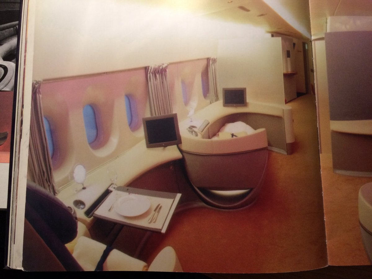 - sense of luxury - noble materials -disposition of the furnitures - spacious even if in an airplane -confined/hushed -holly feel from the "arch" at the back and the lines and the glow of the light coming from the sky outside - looks like the stage of a theater because of the curtain and the empty space in the middle waiting for actors to come in. - idea of "mise en scène" could be a good setting for a story ?