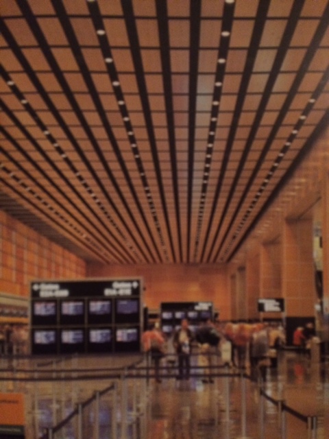 - personifies the idea of a space as a character ( here a airport) - powerful overwhelming prescence the silhouette in the middle are looking so small - very rich gold everywhere -importance of reflection the ceilling mirrors on the floor; idea of a dual vision to sides to something, could be useful in the narrative ? - graphic lines almost like barrs trapping people in the photography. - colomns gives a sense geometry everything is symetrical in the architecture; perfection - almost sacralised, very big space dedicated to one thing (welcoming planes) -ligthing golden like the atmophere of holly an revelation ?; Feels like a very important symbolic environnement : Either plane or airport.