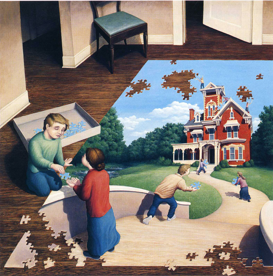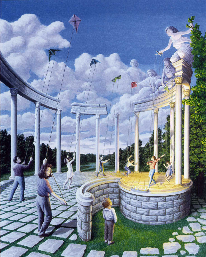 - Surrealism and visual illusion - inspiring illustrative style, simple shapes and soft lines, honest vivid colours - reminds me of children's books illustrations fits well with the idea of creating a narrative implemented in the sketchbook layout, make the pages look like part of an illustrated poem.