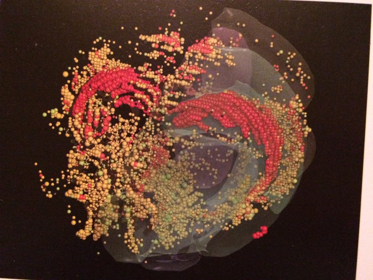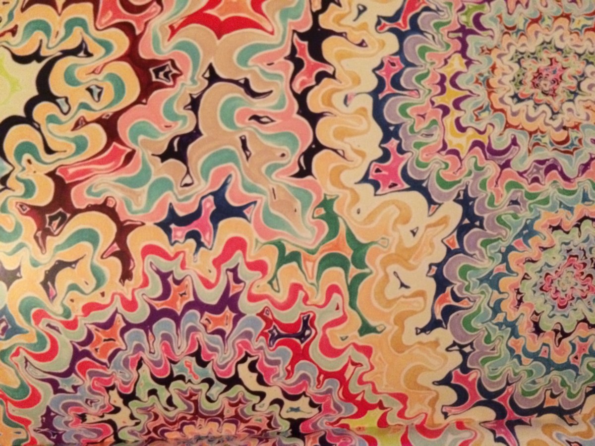 - I liked how each of the painting represented one drug like Serotonin or Lsd for example portraying the "high" the drug was bringing from the perspective of the user rather than using a outside perspective it makes me think I should represent the high of starvation through a print aswell using the artist artistic developpement technique - I like the colour scheme saturation and the impression of movement coming from the prints. - ambivalence between the prints being a representation of the brain or of the hallucination generated by drug use. - Extremely abstract but also meticulous in the process of involving a scientific inspiration from molecules into artistic expression.