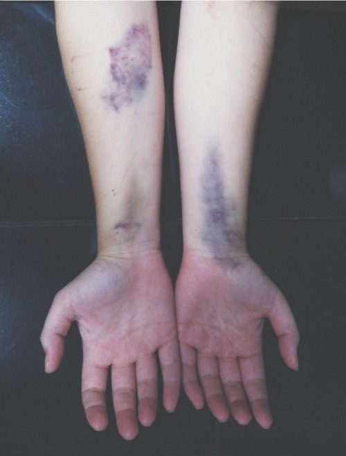 - The colours in the bruises link back to the colour of the sky - The skin is altered visibly hurt through a drastic change of colour - faded colours would be interesting to represent with watercolor - very representative of anorexia, when the body becomes very thin skin bruises really easily.