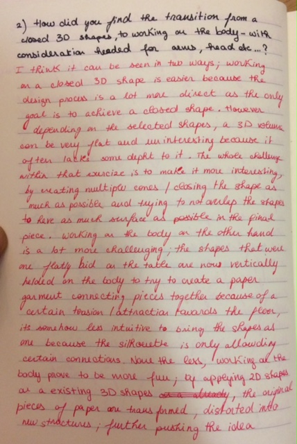 Its weird to get all of that from draping paper on the body, but this experiment showed me that the creative process is a challenge an on going quest that you have to question with the most absurd and instictive idea.