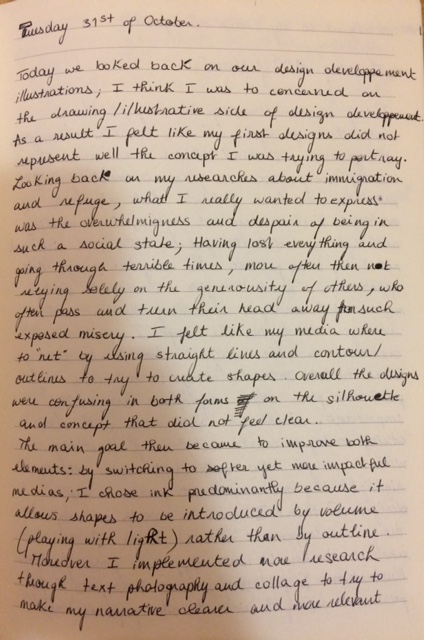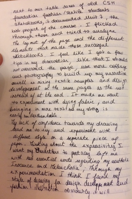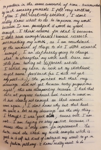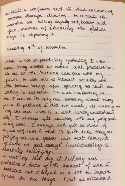 They said they liked my sketchbook and illustrations which felt like a real motivation to work even more and try to do my best. It made me feel a bit more confident about my work and more positive that I was doing OK on the course despite being worried I was not good enough.