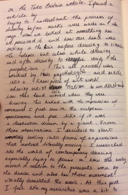 1) Describe the research process and its importance for generating original ideas. The research process is mainly looking at interesting images and texts to pick up inspiration for the design developpement. It could involved learning new techniques from the work a artist, finding out about interesting concepts but also simply interrogating the look of a particular "thing" living or inanimate and how it could be translated into something else. In addition research is a way to build up your own collection of imagery. The research is important because it is the base of all design developpement, through learning new things, it enables creative thinking and the emergence of original idea coming from your own response to what you felt and learnt.
