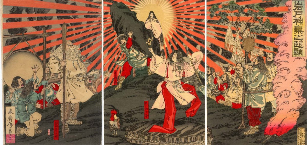 The patterns in this Kimono are reminiscent from the ones worn by the sun Kami in traditional representations.