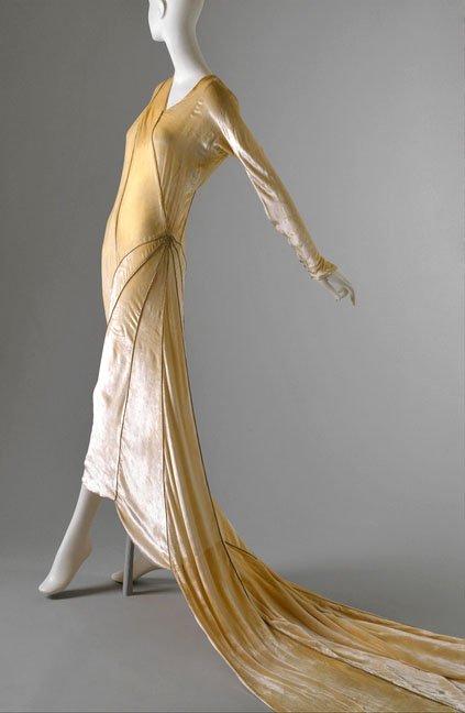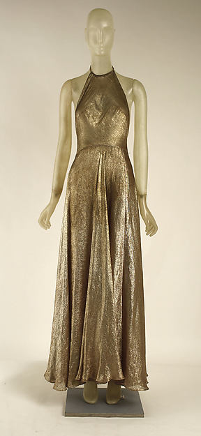 Evening dress, Madeleine Vionnet (French, Chilleurs-aux-Bois 1876–1975 Paris), 1939, French, cotton, metallic, Metropolitan Museum of Art.