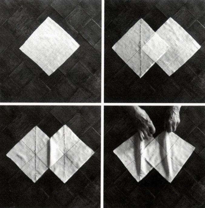 Those shapes are used in one of her famous garnement, the Handkerchief dress.