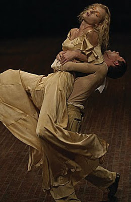 With the help of Michael Clark’s choreography, McQueen re-enacted the dance marathon of Sydney Pollack’s film They Shoot Horses Don’t They. The models danced, ran, and collapsed their way around the stage, at first in old school glamour with stunning ostrich feather ball gowns. Then, as the marathon progressed, in fitted sportswear cut for movement in pinks and greys, and finally in western denim and plaid. Here the act of performing the collection brings the key to understand the meaning behind the garnements like in litterature when the outcome of a novella ties all of the story together.