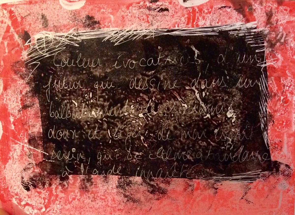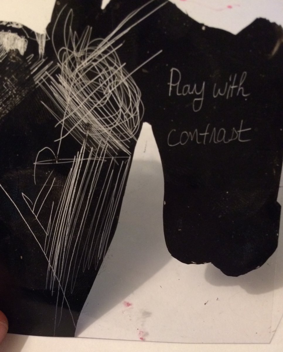 Projecting the images on the body made my prints look very different a lot less colorful and more graphic. This made me realize that working with prints in fashion, on a body changes the shapes. Moreover, by projecting, the patterns experience a change of scale, every visual impact involving either or ligth is multiplied. After creating the prints from the objects, I wrote a small poem related to how the all made me feel on one of the prints to see how writing could transfer into prints. The text invisible at first when catching the ligth is enlightened and becomes readable. From there, I thought this could be intersting to use in fashion design.