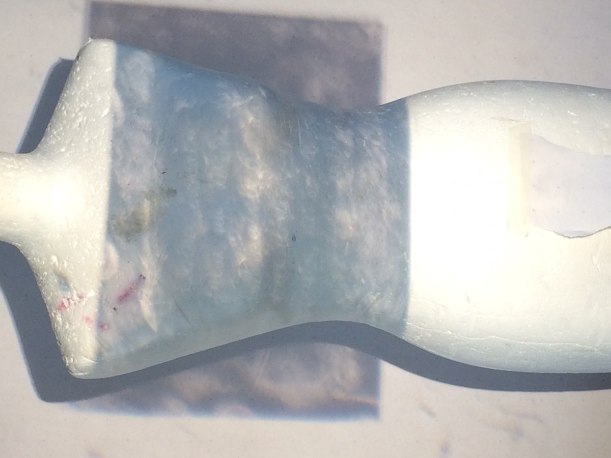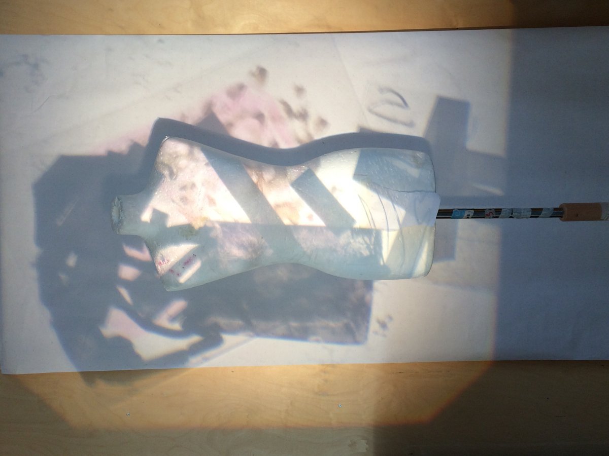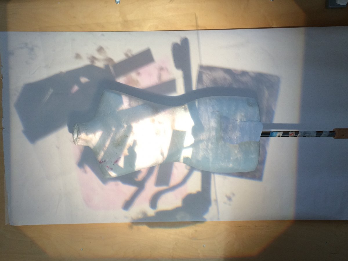 Ultimately, everything comes down to perception. What you assemble, what you see, what you draw, what you create. It is interesting to think that from personal objects we were able to get to a broad variety of abstract prints. You lay out a way for the project and by progressing through the brief you discover all new visions of what you love dearly, objects and memories relating to them transfered into colours, textures, finally ligth when the images were projected on the body. A process that made tangible turn into immaterial, figurative turn to abstract, colours turn to shadows; personal objects became etheral light. By using a mannequin we were able to observe how the prints danced on the body, distorted by the curves, blurred by the projection.