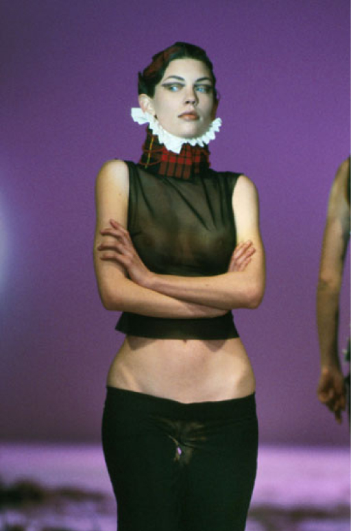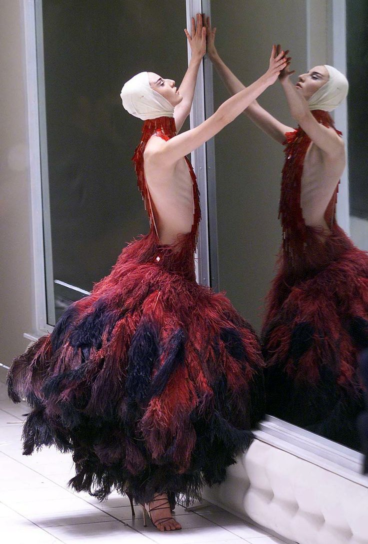 “People were so unintelligent they thought this was about women being raped – yet ‘highland rape’ was about England’s rape of Scotland” [Alexander McQueen]. The name McQueen gave this show and his slashing and shredding of some of the pieces sparked controversy about this collection. It featured Edwardian collars, lace fragments and dresses in traditional tartans cut deep or torn to expose the breasts. The chock is never pointless, fashion seems to carry a social engagement as artists they denounce the crualty of the world, past or present.